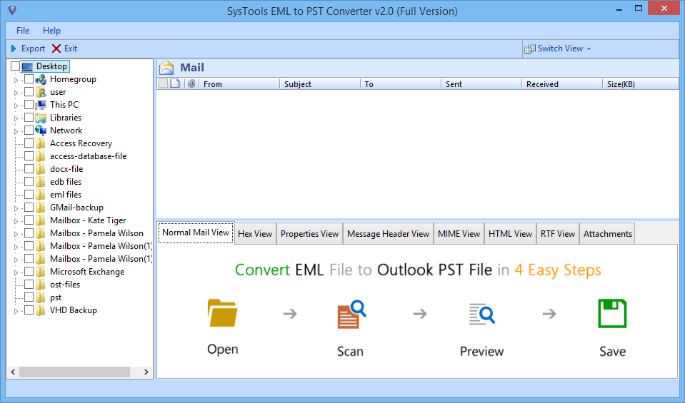 The tool supports different email client such as Windows Live Mail, thunderbird, Outlook Express, Eudora, etc and converts EML to Outlook PST formats.